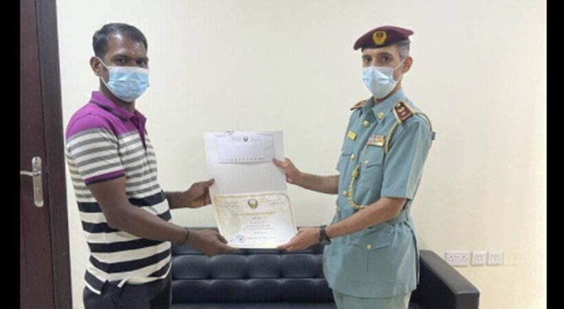 According to the Office of the Deputy Commander-in-Chief of Police director, Lt. Colonel Abdullah Khalfan Abdullah Al Nuaimi, Pandian was honoured as part of the police department’s initiative to reward collaborators who enhance security and safety.