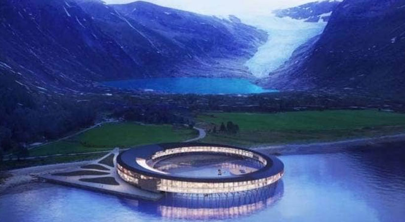 Svart is a circular hotel built on the shores of the Swartisen Glacier in the Meloy region. The 99-room hotel includes four restaurants with locally inspired tasting menus ranging from rustic to gourmet and with many other dishes made with produce grown at the sustainable farm on-site. All the rooms are equipped with windows that open to the beautiful bay views. The hotel has a circular shape design with more attractive and spacious ideas, and in a way that does not harm the environment at all. It is made using local and natural products and inspired mainly by a Norwegian fiskehjell, a wooden structure used to dry fish, and a rorbue, a fisherman’s traditional seasonal home in with the surrounding nature. There is also a farm here to produce the ingredients for the four restaurants inside the hotel.